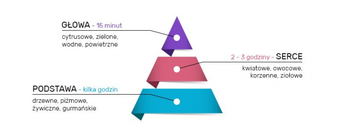Trójfazowa piramida perfum działa jako most łączący producenta i użytkownika lub eksperta i laika. Dostarcza podstawowych informacji o składzie zapachu, jego aranżacji i sile zawartych w nim zapachów. Daje dokładniejsze wyobrażenie o perfumach i ich rozwoju po użyciu na skórze. Podczas gdy głowa perfum przyciąga uwagę i utrzymuje się przez kilka minut, serce zachwyci Cię godzinami, a Ty i Twoje otoczenie nacieszycie się bazą jeszcze przez wiele godzin!