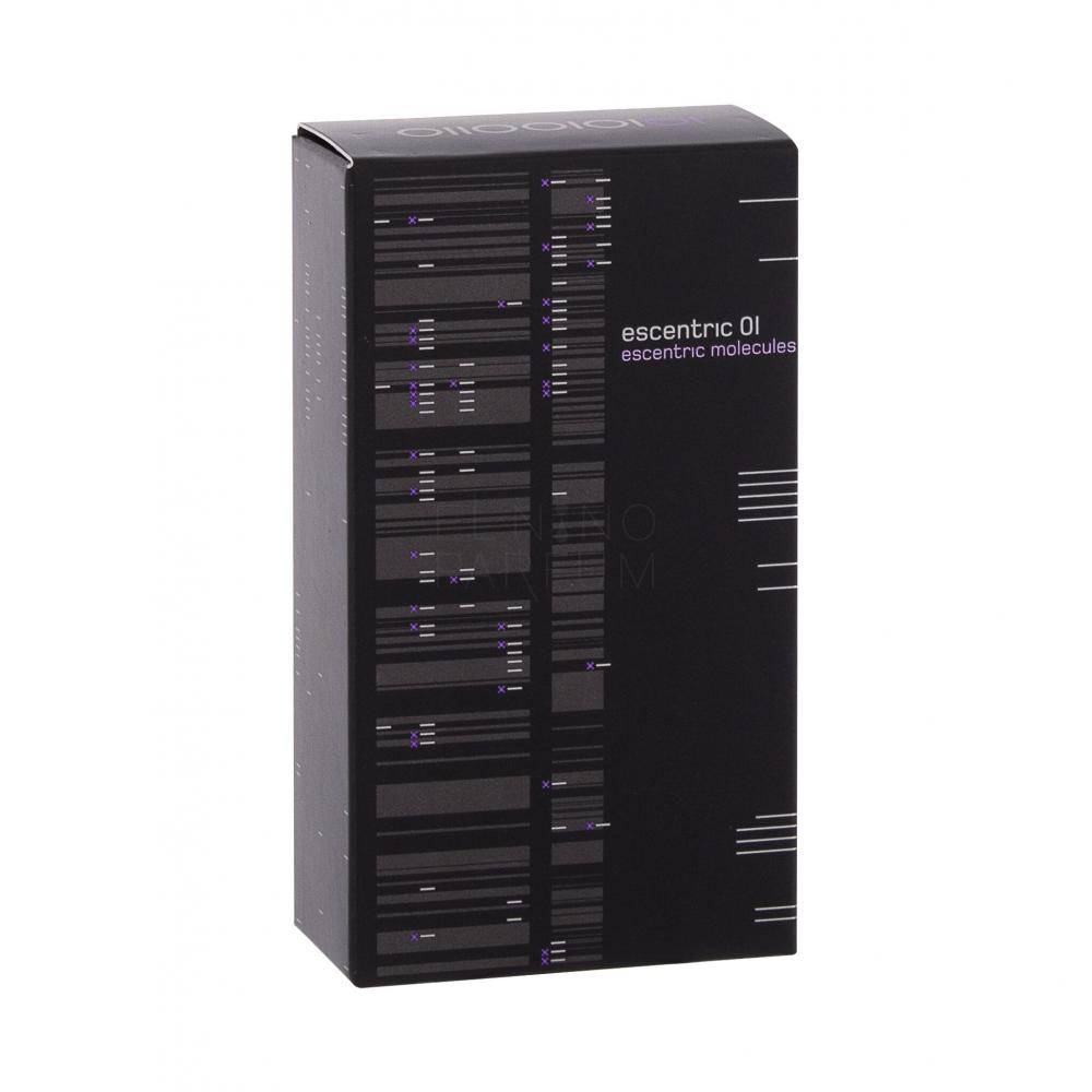 Escentric Molecules Escentric 01 to kwiatowy zapach przeznaczony zarówno dla kobiet, jak i mężczyzn. Na rynek wprwadzono go w 2006 roku. Zapach otwierają nuty delikatnego irysa i cytryny Amlafi doprawione różowym pieprzem. Podstawą perfum Escentric 01 jest składnik Iso E Super. Perfumy Escentric Molucules Escentric 01 zostały stworzone przez Gezę Schoen.