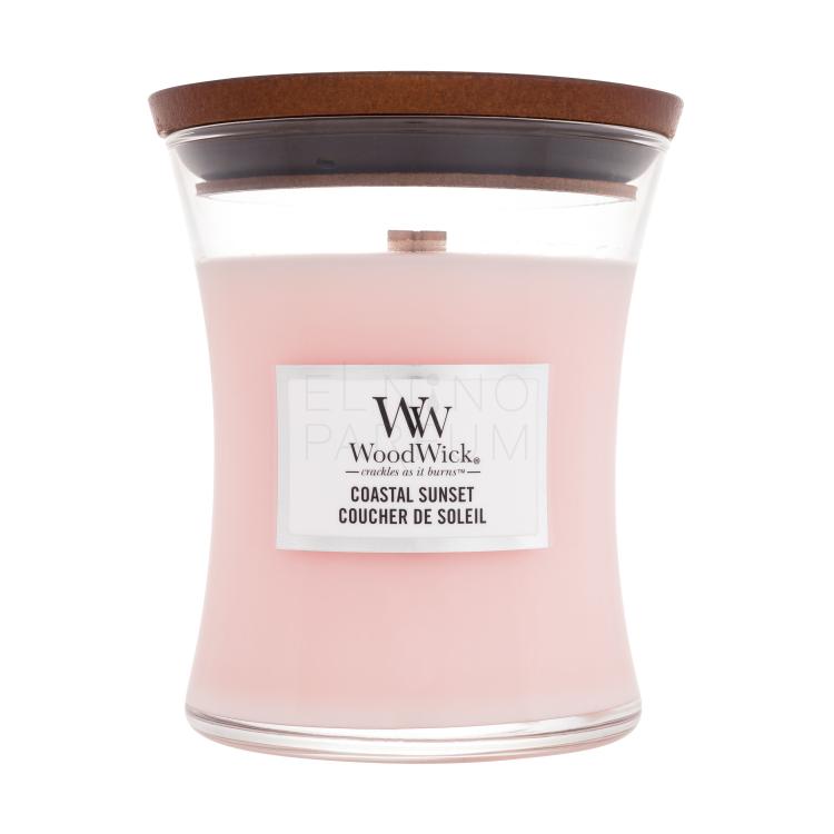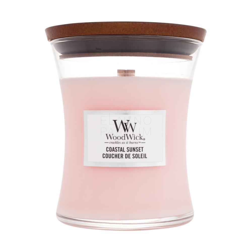 Świeczka zapachowa WoodWick Coastal Sunset została wyprodukowana z mieszanki parafiny wysokiej jakości i wosku sojowego, którą nasycono skoncentrowanymi wonnymi esencjami. Unikalny drewniany knot Pluswick® Innovation podczas palenia wydaje dźwięk trzaskającego ognia.