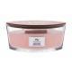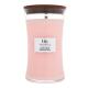 Świeczka zapachowa WoodWick Coastal Sunset została wyprodukowana z mieszanki parafiny wysokiej jakości i wosku sojowego, którą nasycono skoncentrowanymi wonnymi esencjami. Unikalny drewniany knot Pluswick® Innovation podczas palenia wydaje dźwięk trzaskającego ognia.