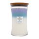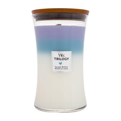 Świeczka zapachowa WoodWick Trilogy Calming Retreat została wyprodukowana z mieszanki parafiny wysokiej jakości i wosku sojowego, którą nasycono skoncentrowanymi wonnymi esencjami. Unikalny drewniany knot Pluswick® Innovation podczas palenia wydaje dźwięk trzaskającego ognia.